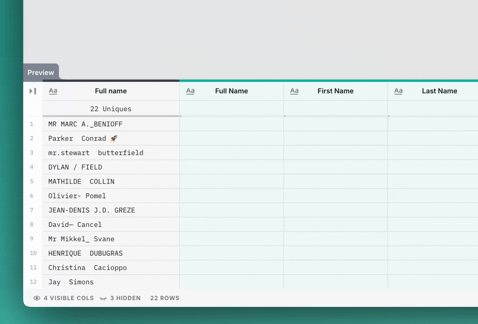 Easily reformat and clean your records with AI - merge data, keep styles consistent, and remove emojis or unnecessary text.